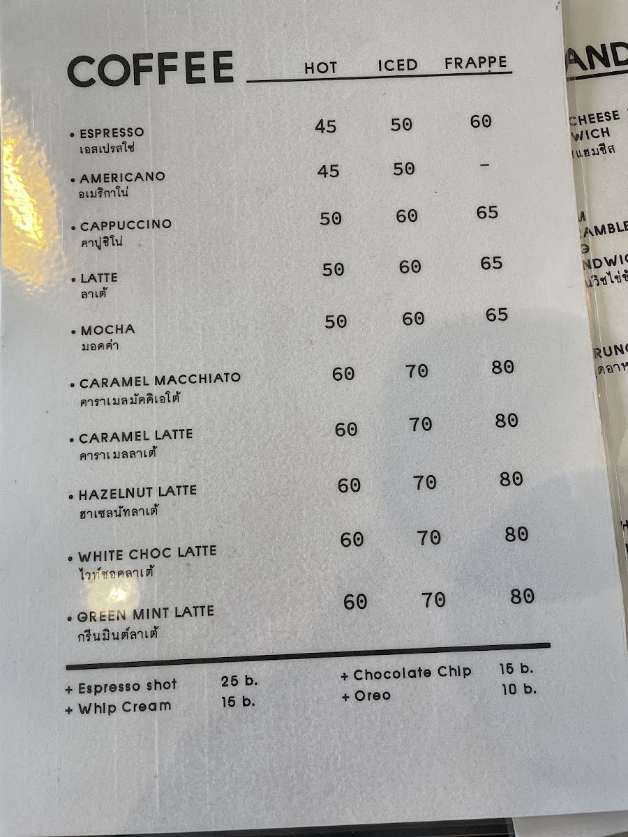 Budhtri Coffee ( กาแฟบตร เสาชงชา) Menu